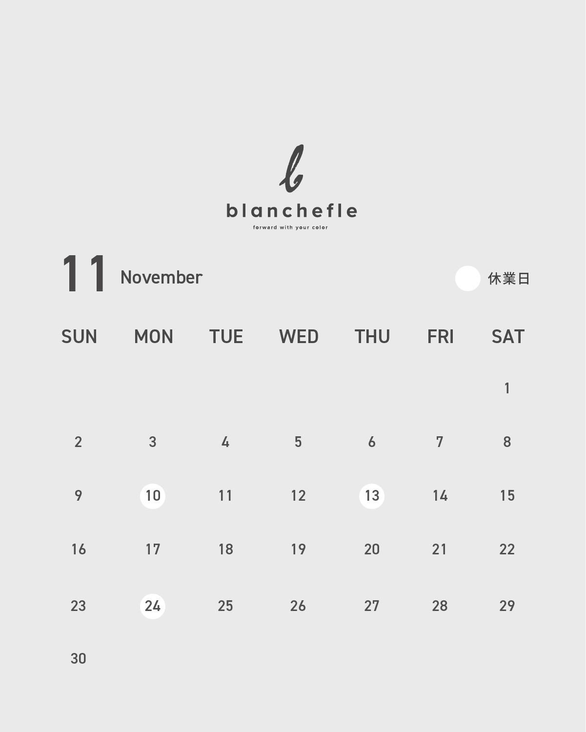 11月の各店舗の休業日をお知らせいたします。