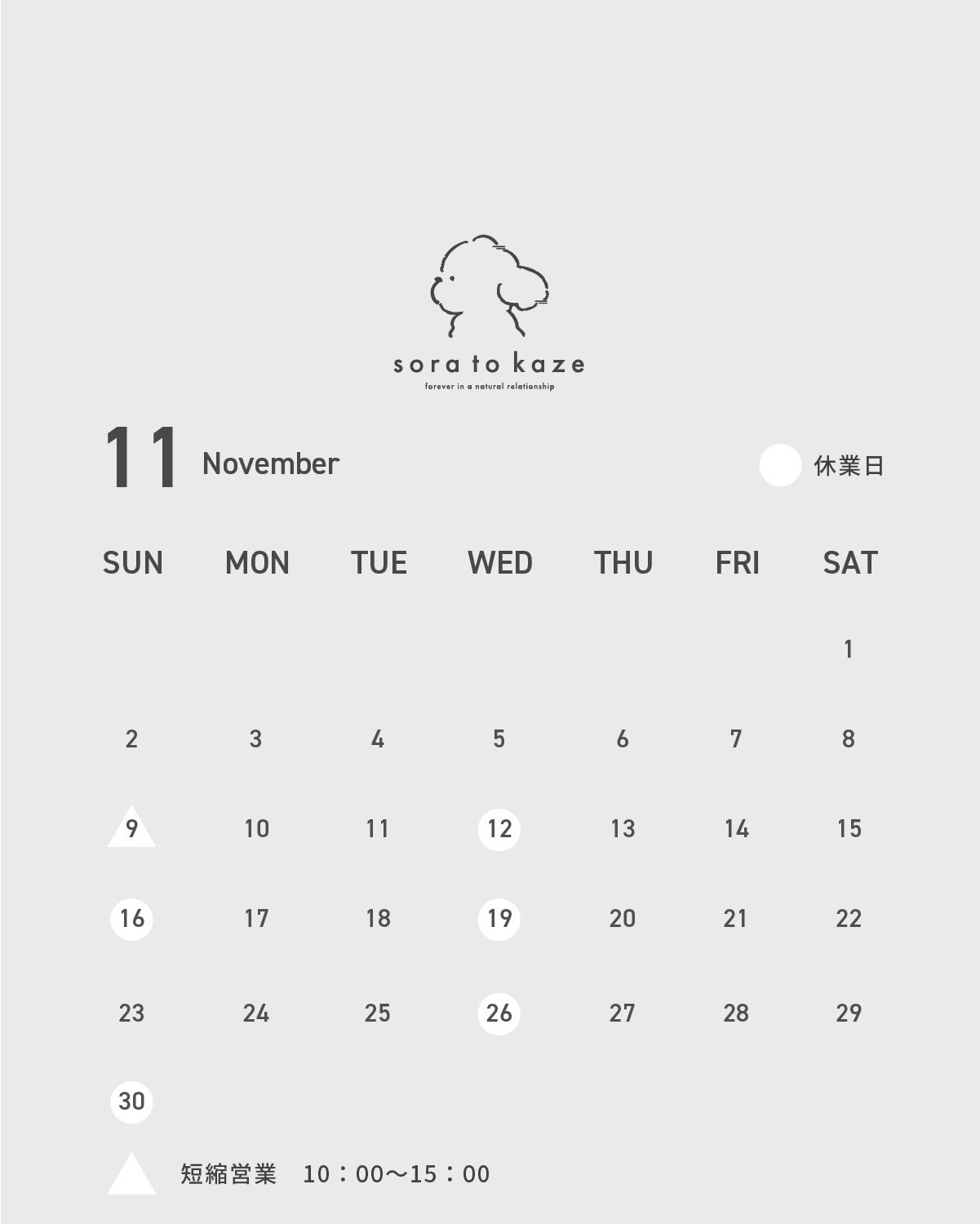 11月の各店舗の休業日をお知らせいたします。