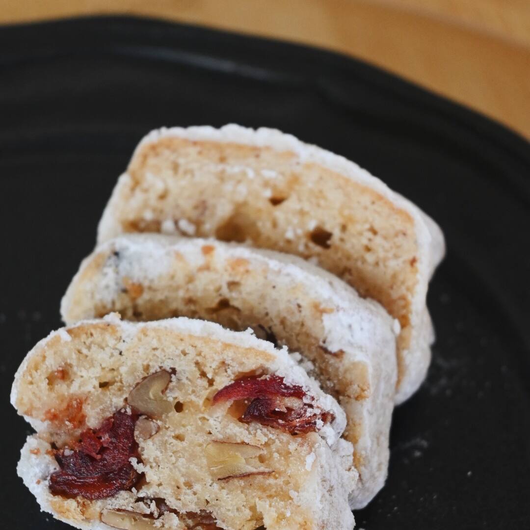 ドイツのクリスマス定番菓子をアレンジしました。ベリーやナッツを練り込み、たっぷりの発酵バターにくぐらせ粉糖をまぶした贅沢すぎる一品。