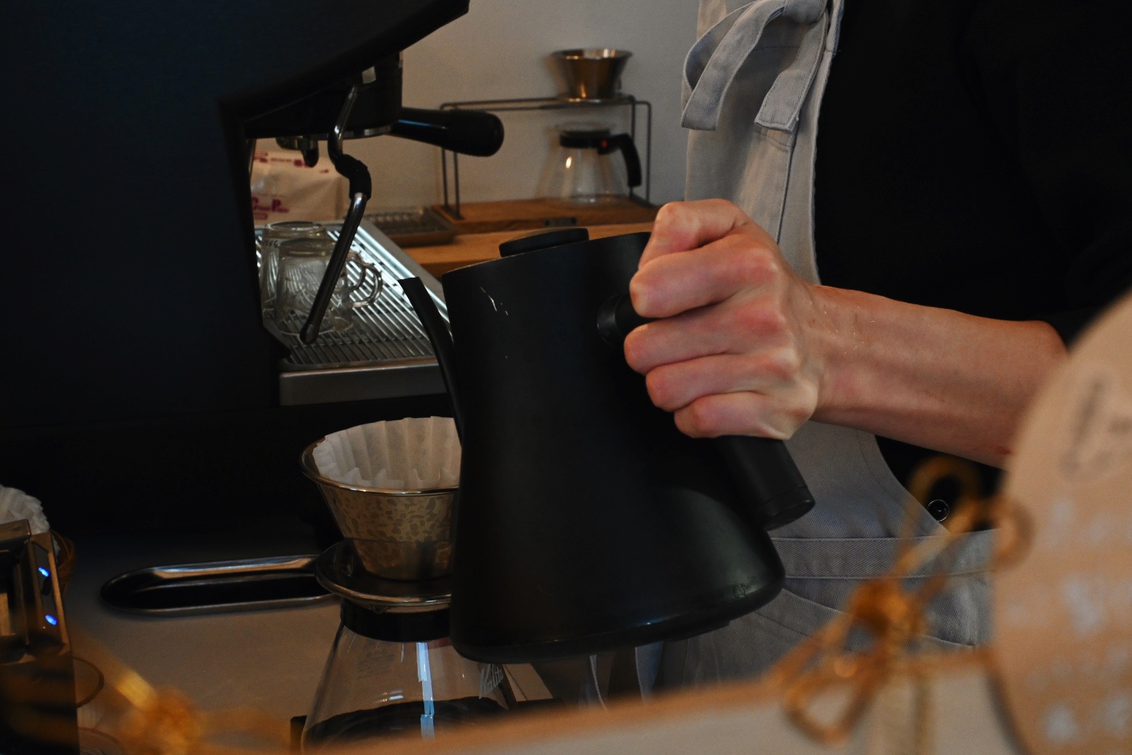 実際に入社してから特に大変だったのは、ハンドドリップでいれるコーヒー。まったくの初心者からのスタートで、いちから勉強する日々でした。