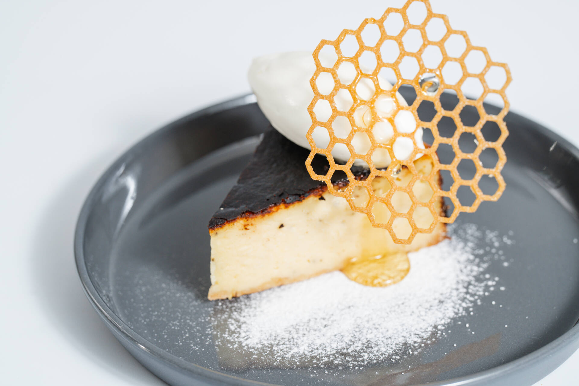 くう: バスクチーズケーキはtone cafeの定番メニューですけど、五感で楽しめるメニューだなと思います。まず見た目。販売当初はシンプルな見た目だったんですけど、今のは蜂の巣の形をしたチュイルをのせて、はちみつを垂らして、見た目から楽しくなるような感じに改良を加えています。そして香り。チーズの香りとローズマリーの香りがすごくて、五感で味わえるな〜って思います。最近だと、期間限定のメニューを定期的に出しているかなと思うんですけど、そのあたりも遊び心を感じますよね。