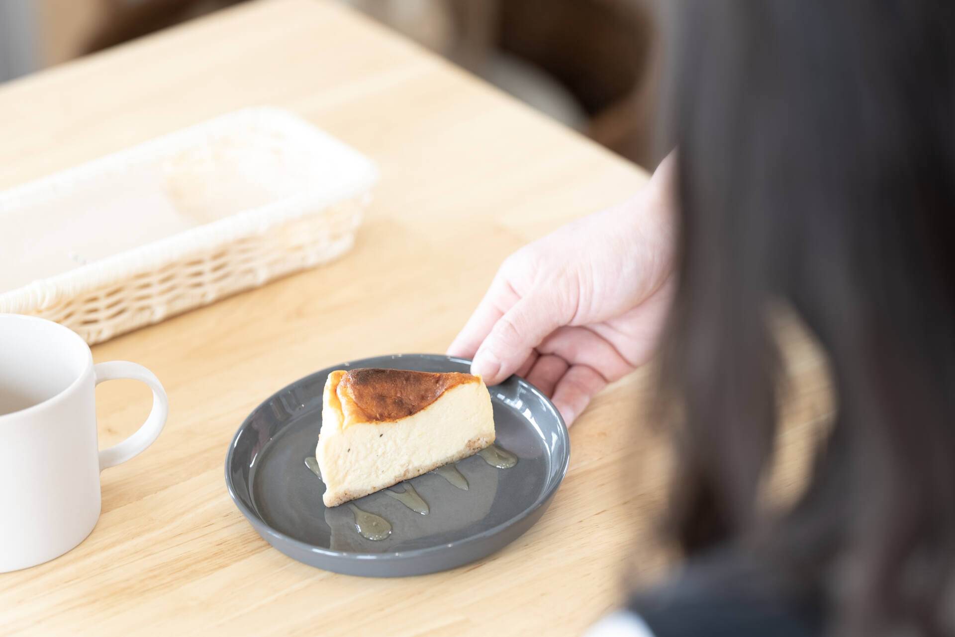 定番メニューの「バスクチーズケーキ」も中にローズマリーを練り込んで、ふわふわのパルミジャーノを混ぜたりしていて。ローズマリーを練り込んでいると生地に黒いつぶつぶが見えるので、これはローズマリーなんですと説明すると、すごく驚かれますね。